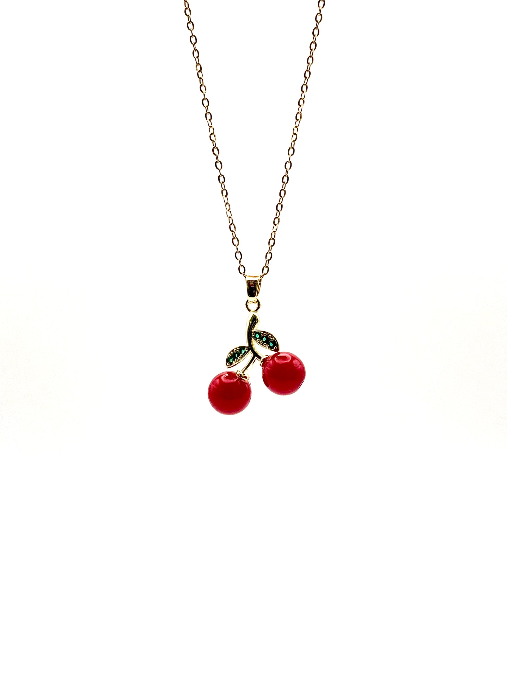 Collier Cherry Rouge à Pétales Vertes