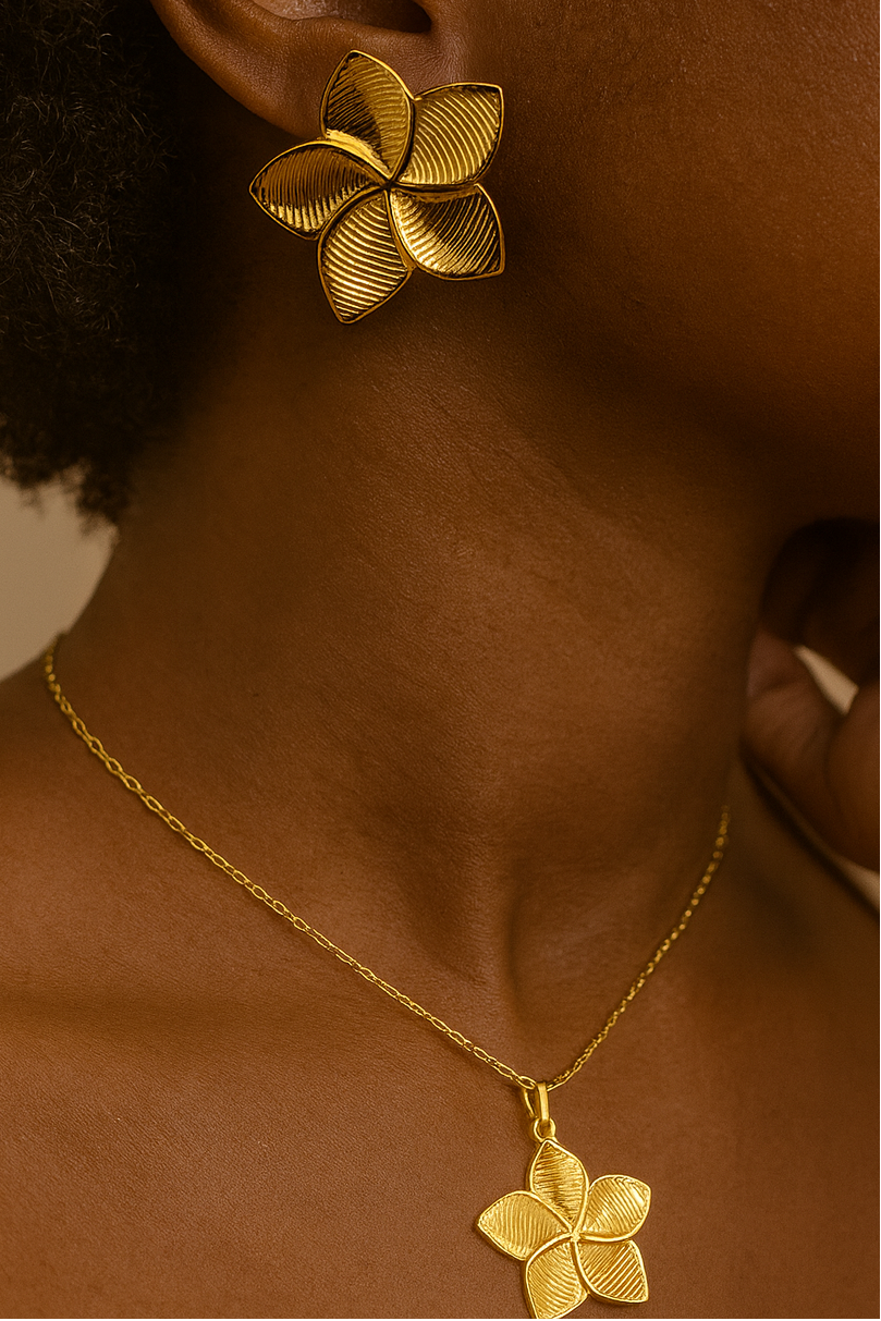 Découvrez Flora, un ensemble délicat qui célèbre la beauté naturelle des fleurs. Composé de pièces en acier inoxydable doré, cet ensemble présente des motifs floraux à 5 pétales d'une finesse remarquable. L'acier inoxydable garantit une durabilité exceptionnelle et une résistance à la corrosion, parfait pour un port quotidien sans compromis. Idéal pour ajouter une touche d'élégance intemporelle à votre collection de bijoux, Flora accompagne vos moments précieux avec grâce et raffinement.